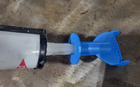 This tip is for the caulking gun without a cut-out opening. Trim the tip of the tube to fit inside the 3D printed tip, then insert the tube into the caulking gun and install the tip. You will need to hold it in place while using. This will spread the sealer out to a bead about 2in wide. The tip is reusable. Clean after each use.